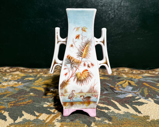 Franse Porseleinen Amfora - Biedermeier Vaasje - Handgeschilderd Verguld 19e Eeuw