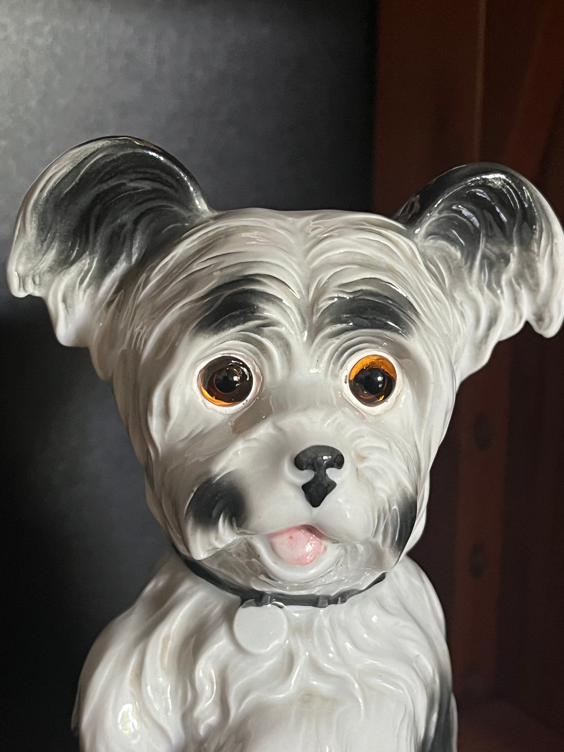 Een prachtig Mid Century exemplaar van een zogenaamd parfum lampje in de vorm van een zittend hondje.