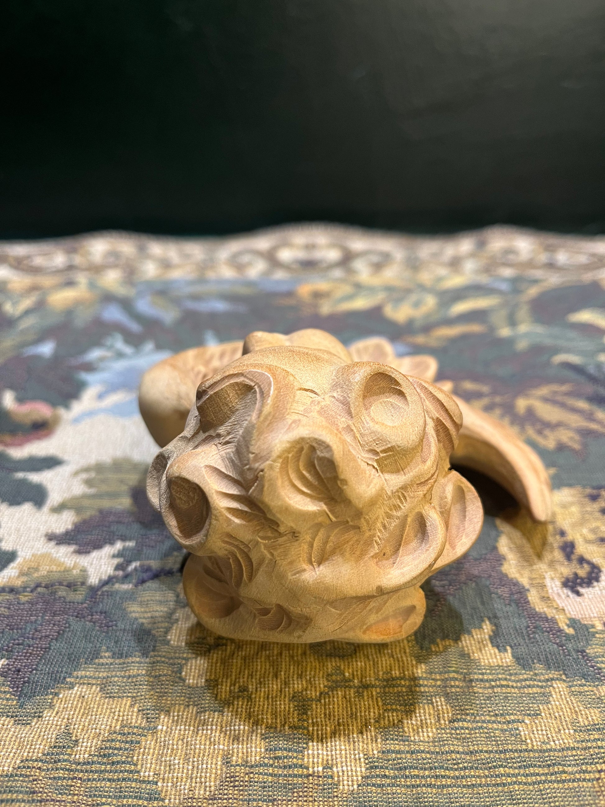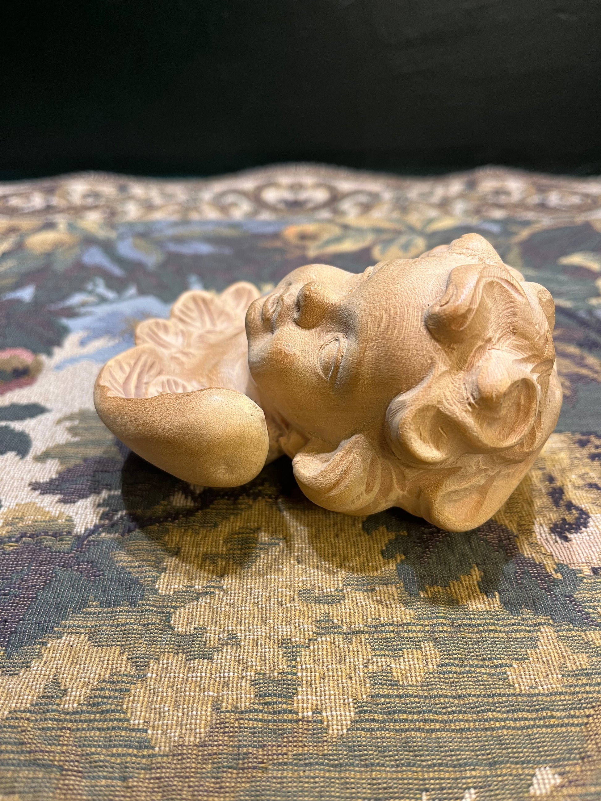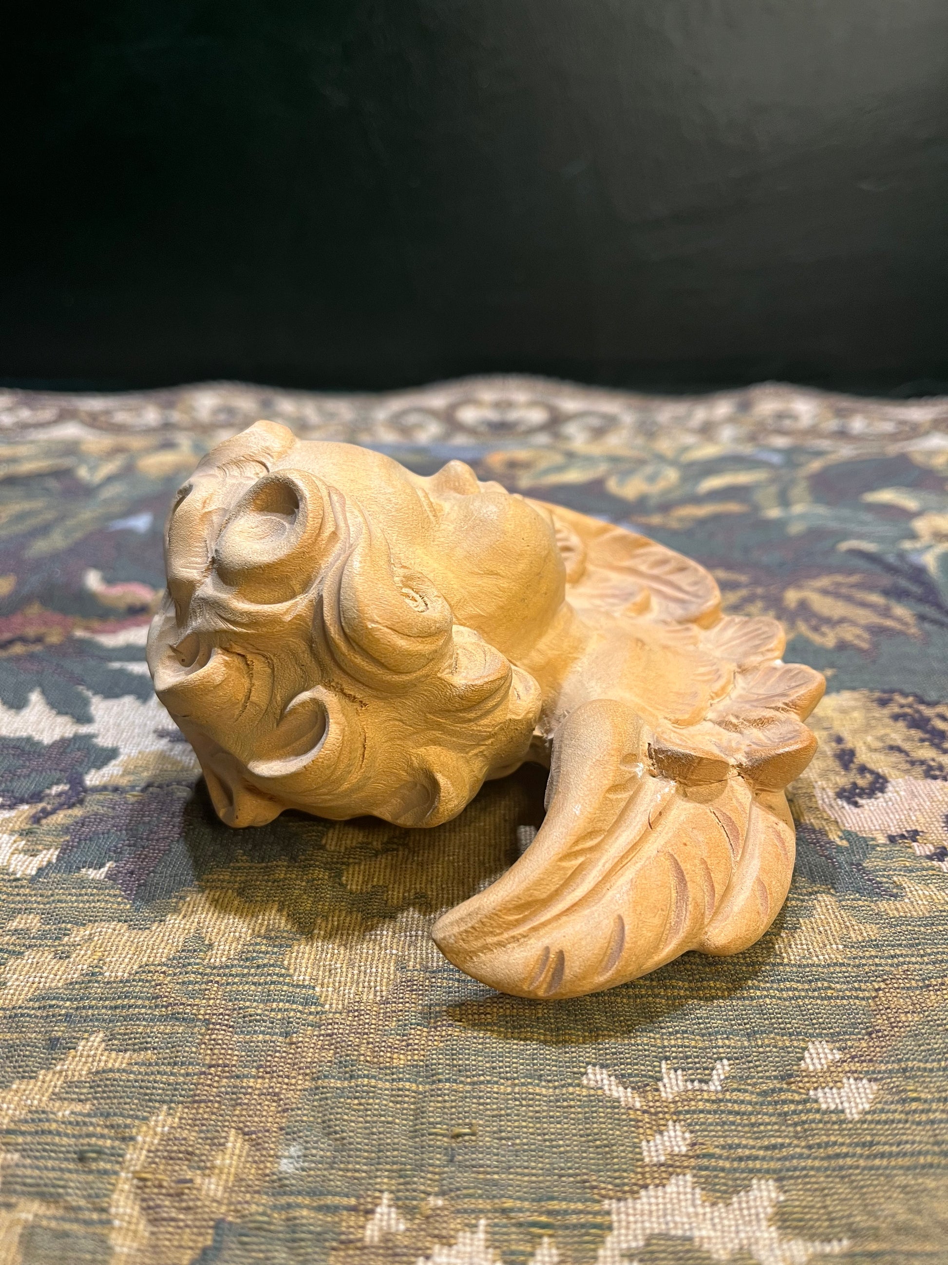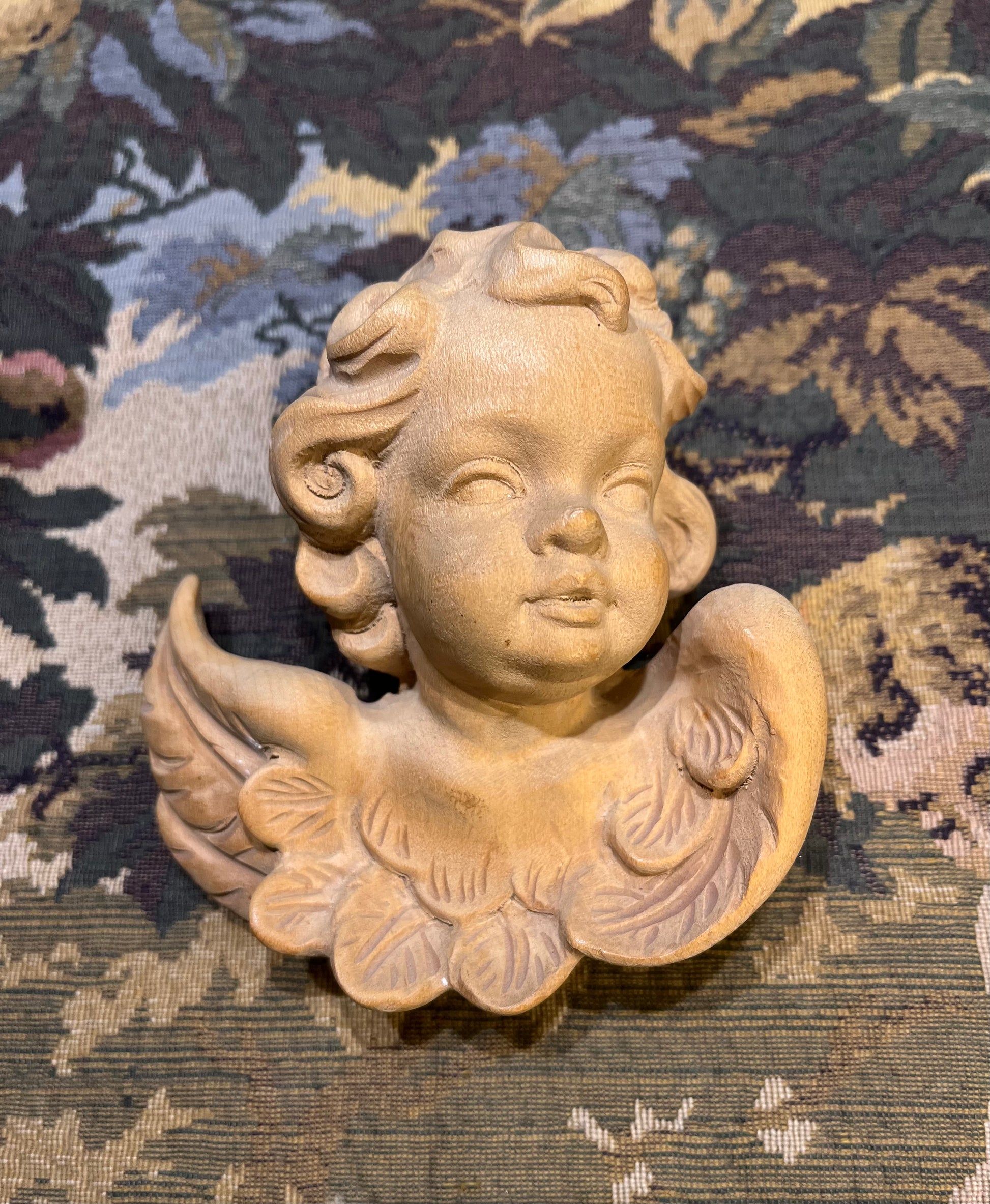 Hoewel cherubijnen nog steeds worden geproduceerd, is dit exemplaar uniek door het ambachtelijke handwerk. Het vriendelijke gezicht en de zorgvuldige details getuigen van traditioneel Oostenrijks houtsnijwerk.