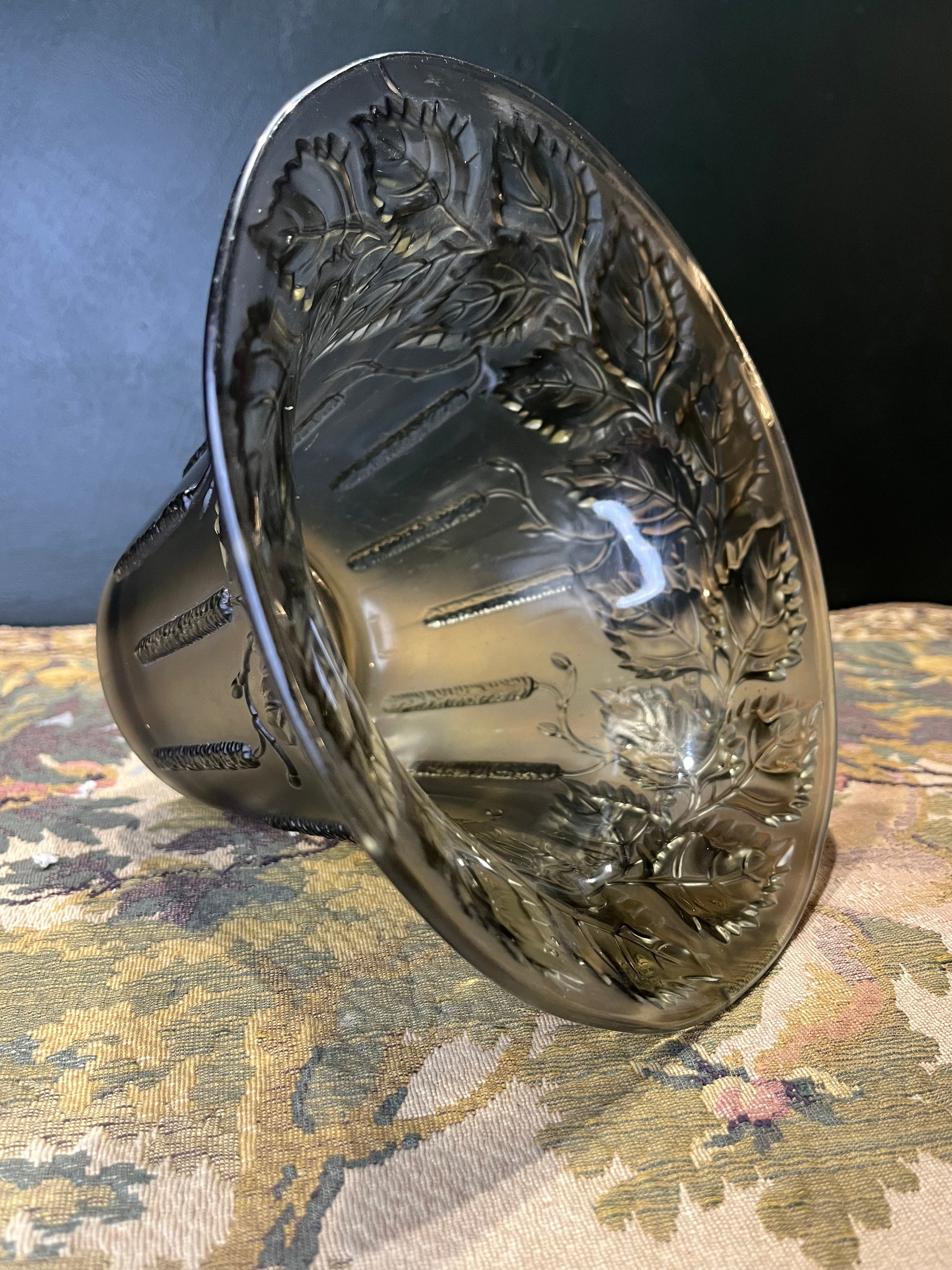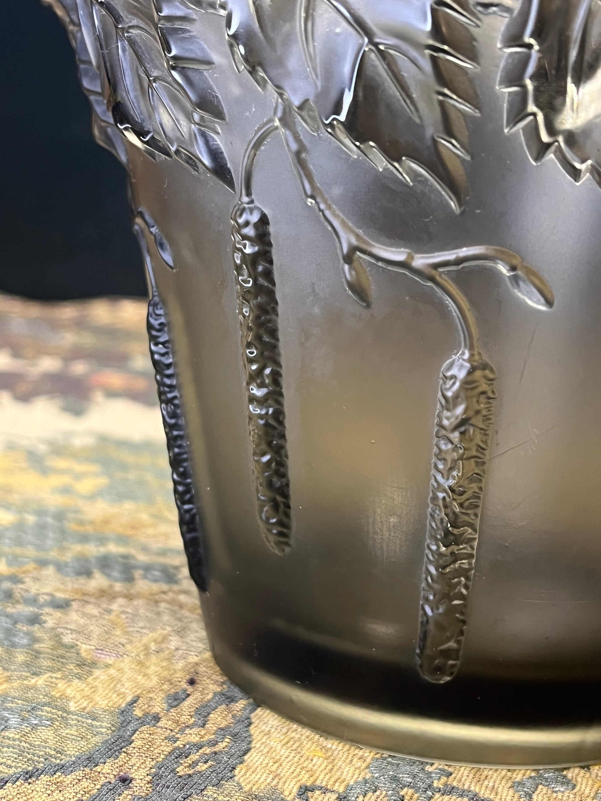 Het driedimensionale hazelaar motief is zichtbaar vanuit verschillende hoeken en creëert een prachtig lichtspel. De vaas is veelzijdig inzetbaar voor bloemen of als decoratief object en past uitstekend in zowel Art Nouveau als eclectische interieurs.