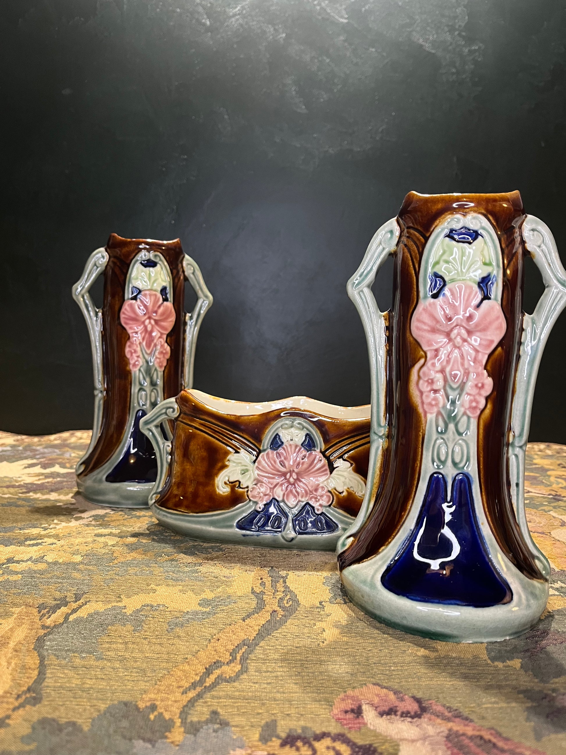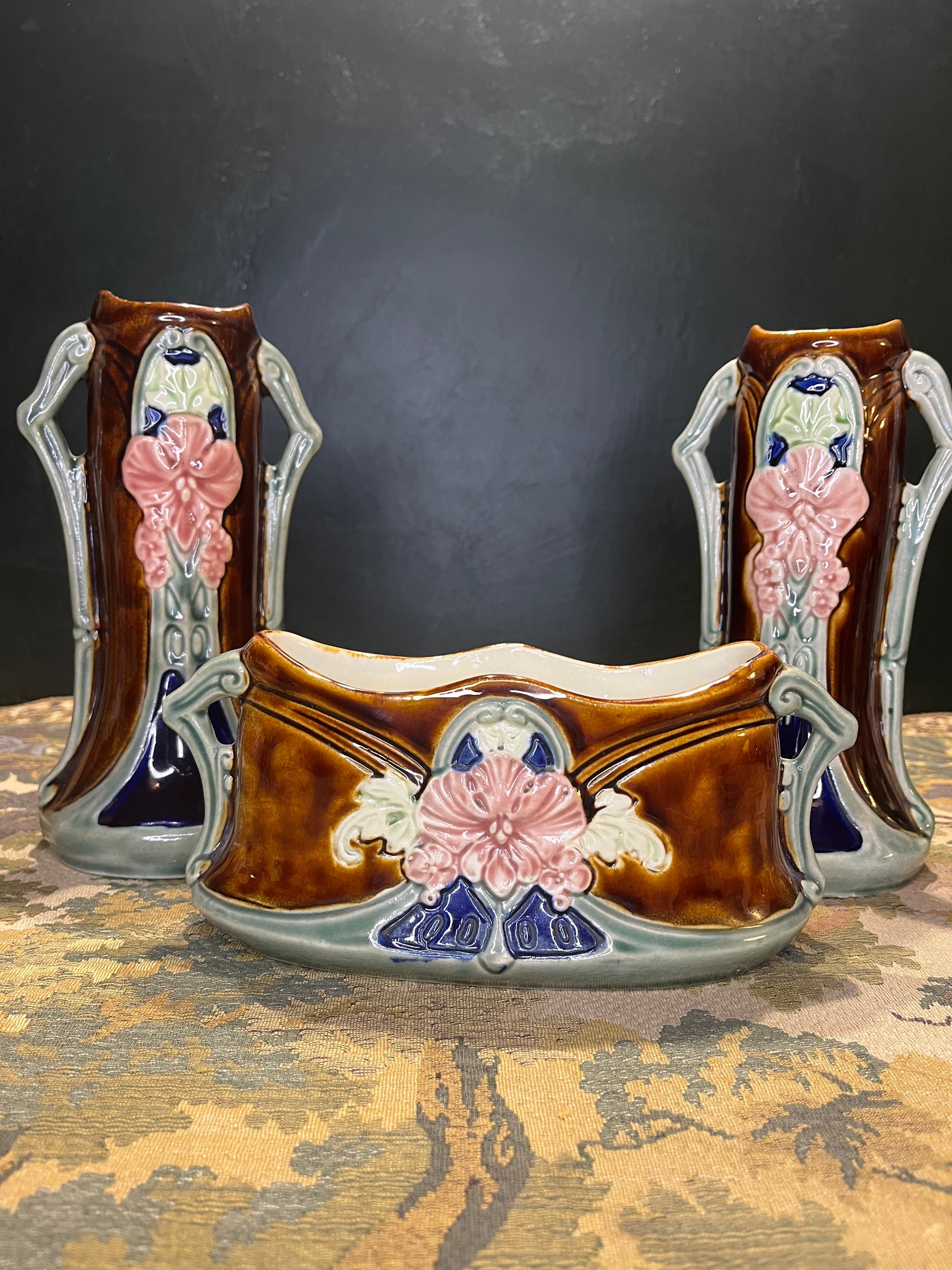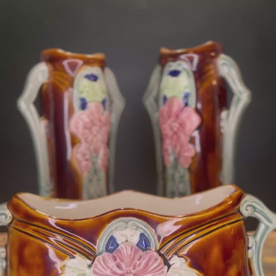 Waechtersbacher Jugendstil Kaststel 3-delig - Majolica Cache Pot & Vazen ca. 1900