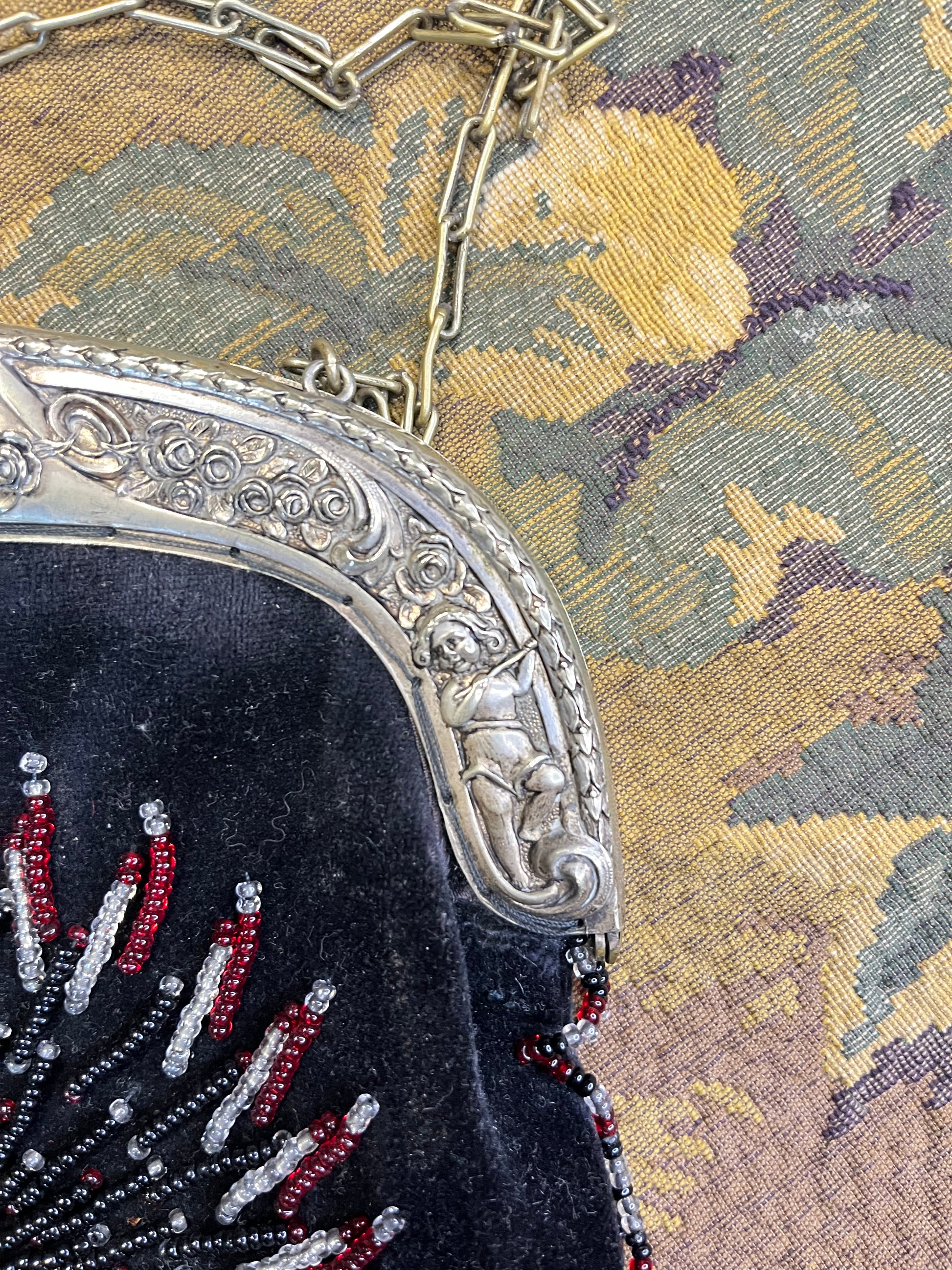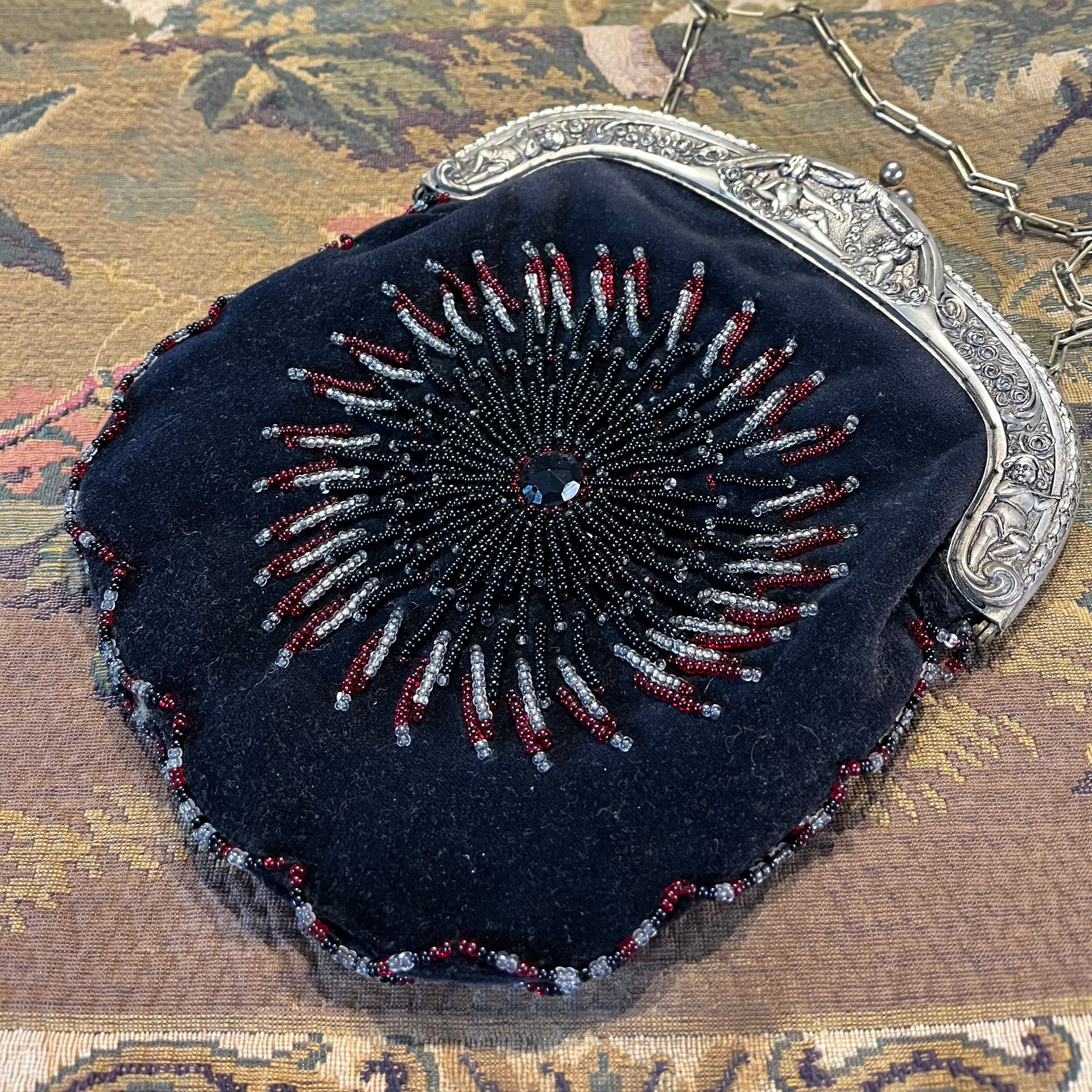 Tasje 1: Art Nouveau Fluweeltasje met Glasparel Borduursel