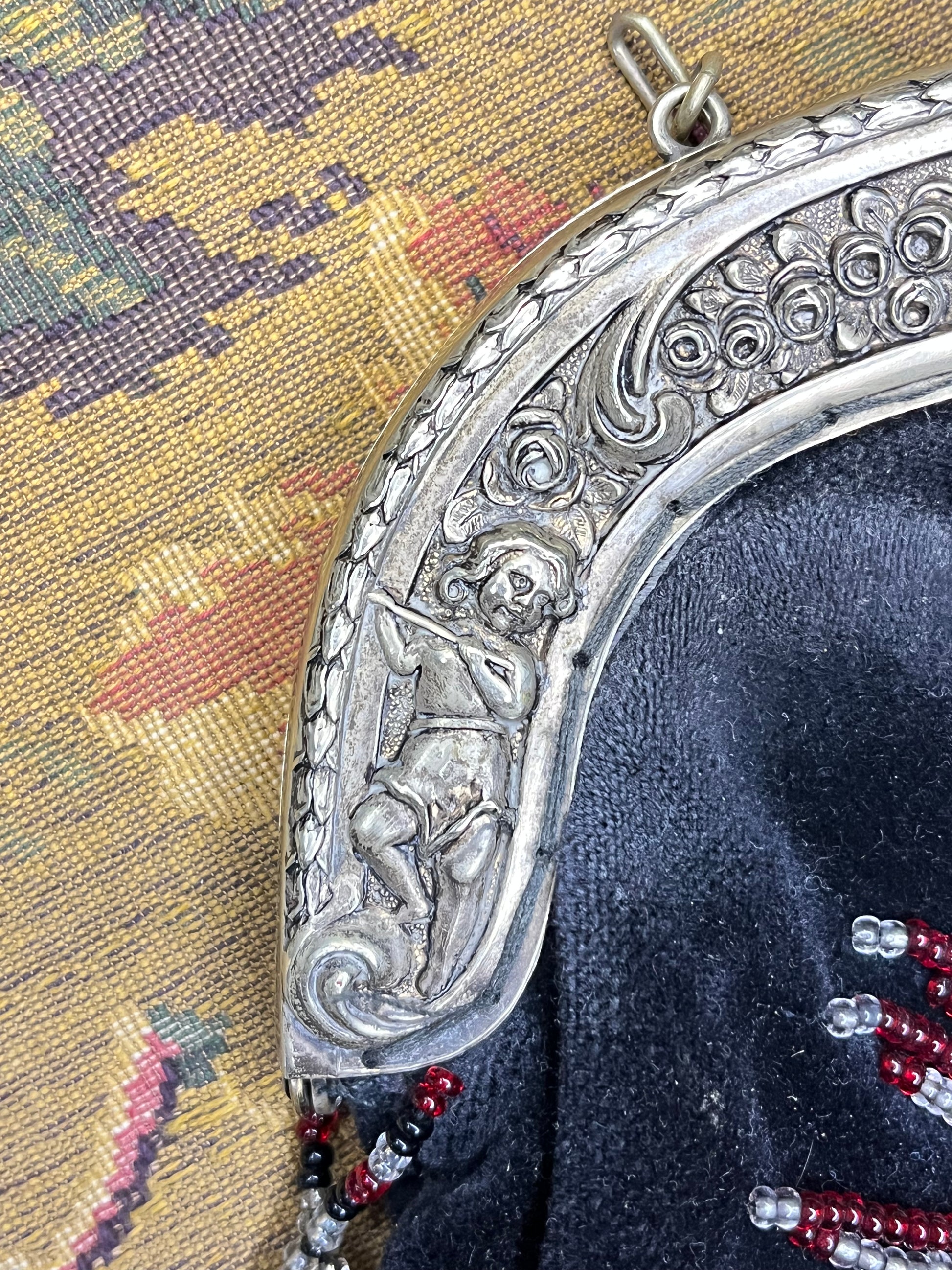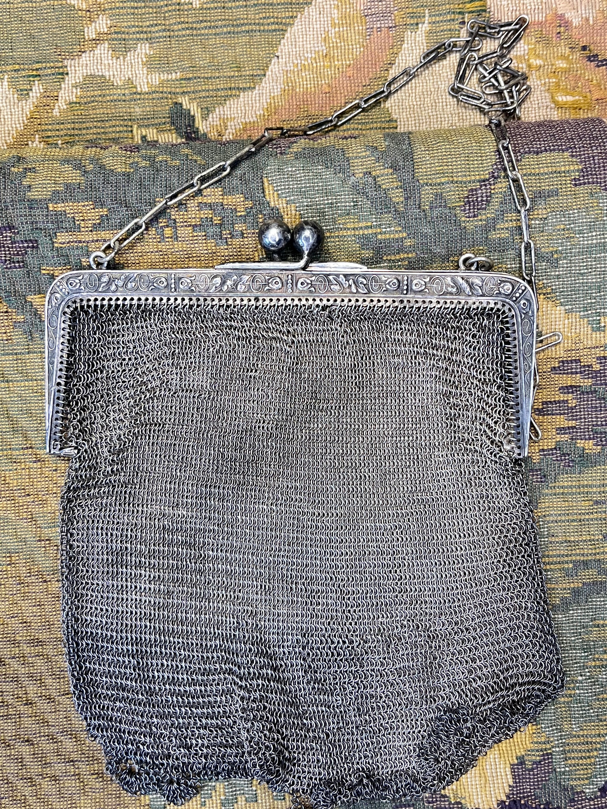 - Conditie: Decoratief antiek stuk, niet meer functioneel als tasje